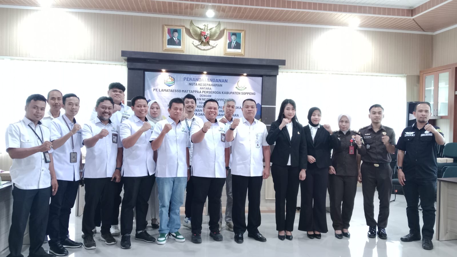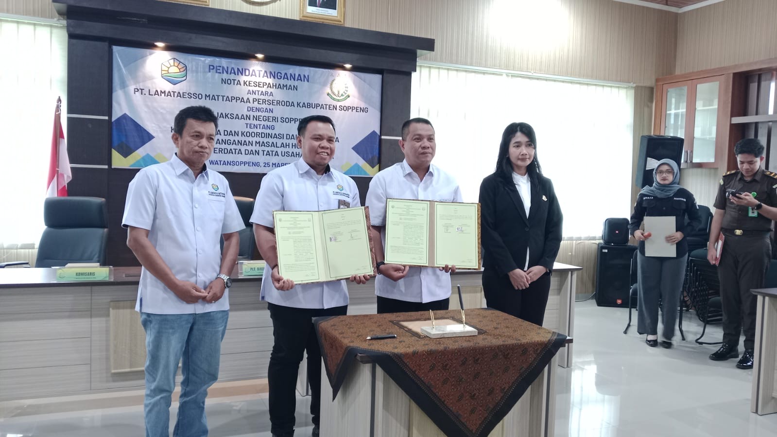 SOPPENG — PT Lamataesso Mattappaa (Perseroda) Kabupaten Soppeng resmi menjalin kerja sama strategis dengan Kejaksaan Negeri Soppeng dalam rangka penguatan aspek hukum di bidang perdata dan tata usaha negara. Kesepakatan tersebut ditandai melalui penandatanganan nota kesepahaman yang berlangsung di Aula Kejari Soppeng, Kamis (25/3/2026).