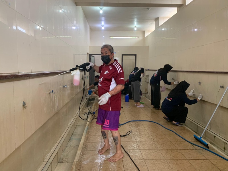 Kegiatan ini difokuskan pada pembersihan area tempat wudhu serta toilet yang menjadi fasilitas utama jamaah. Para peserta terlihat bergotong royong membersihkan lantai, saluran air, hingga dinding fasilitas tersebut sejak pagi hari.